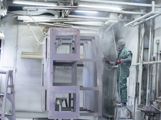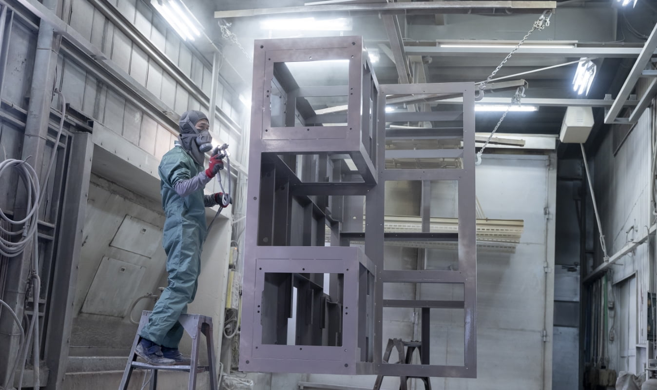 洗浄後、錆止めや下地づくりなどの塗装前処理を施し、塗装をしていきます。塗装の膜厚や塗ムラなどがあると製品の耐久性にも影響が出るため、職人の経験と丁寧な作業が要求されます。