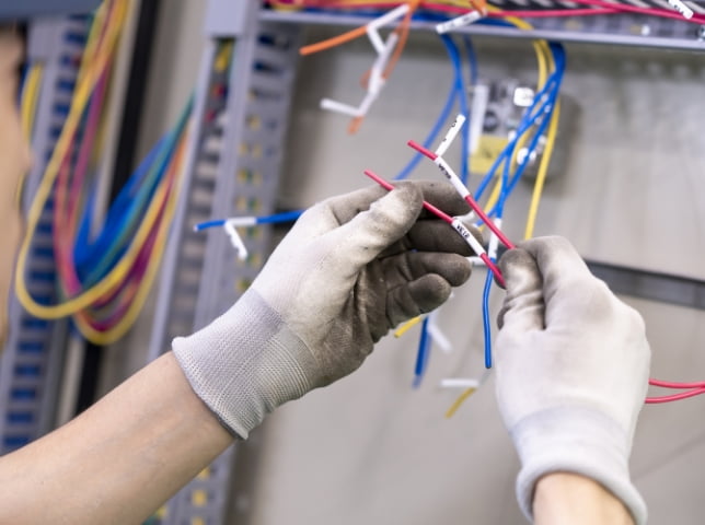 仕様書に基づいた回路通りに動作するか、外形寸法や銘板・表示機器類が正しく配置されているか、また塗装面や膜厚などに不備、誤配線や短絡配線などを確認、検査します。