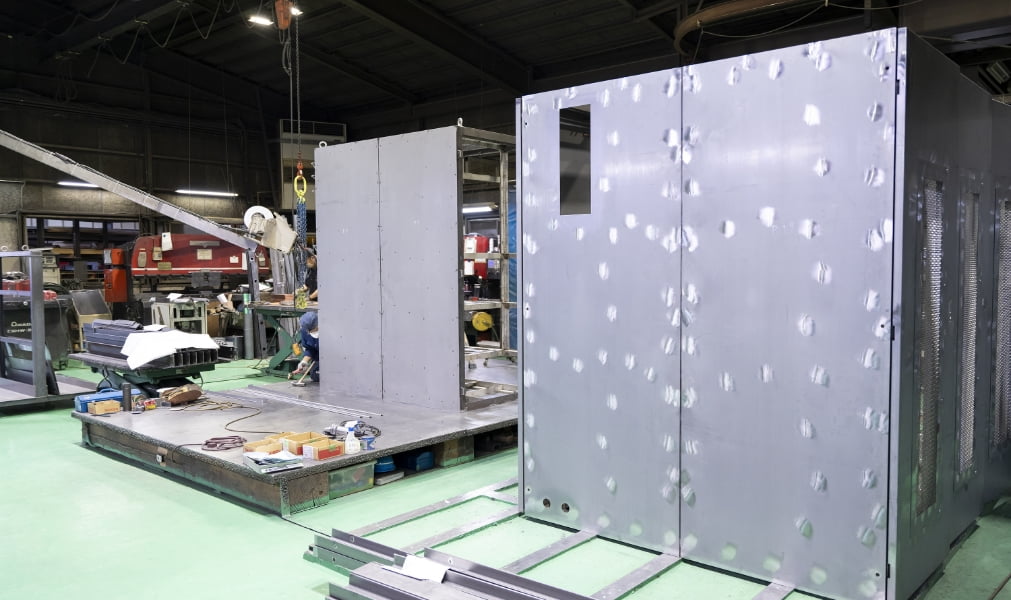 当初は金属製品の組み立てが主でしたが、現在は変電所に設置される変圧の配電盤や鉄工所にある溶鉱炉の制御盤をメインに製造と販売をしております。